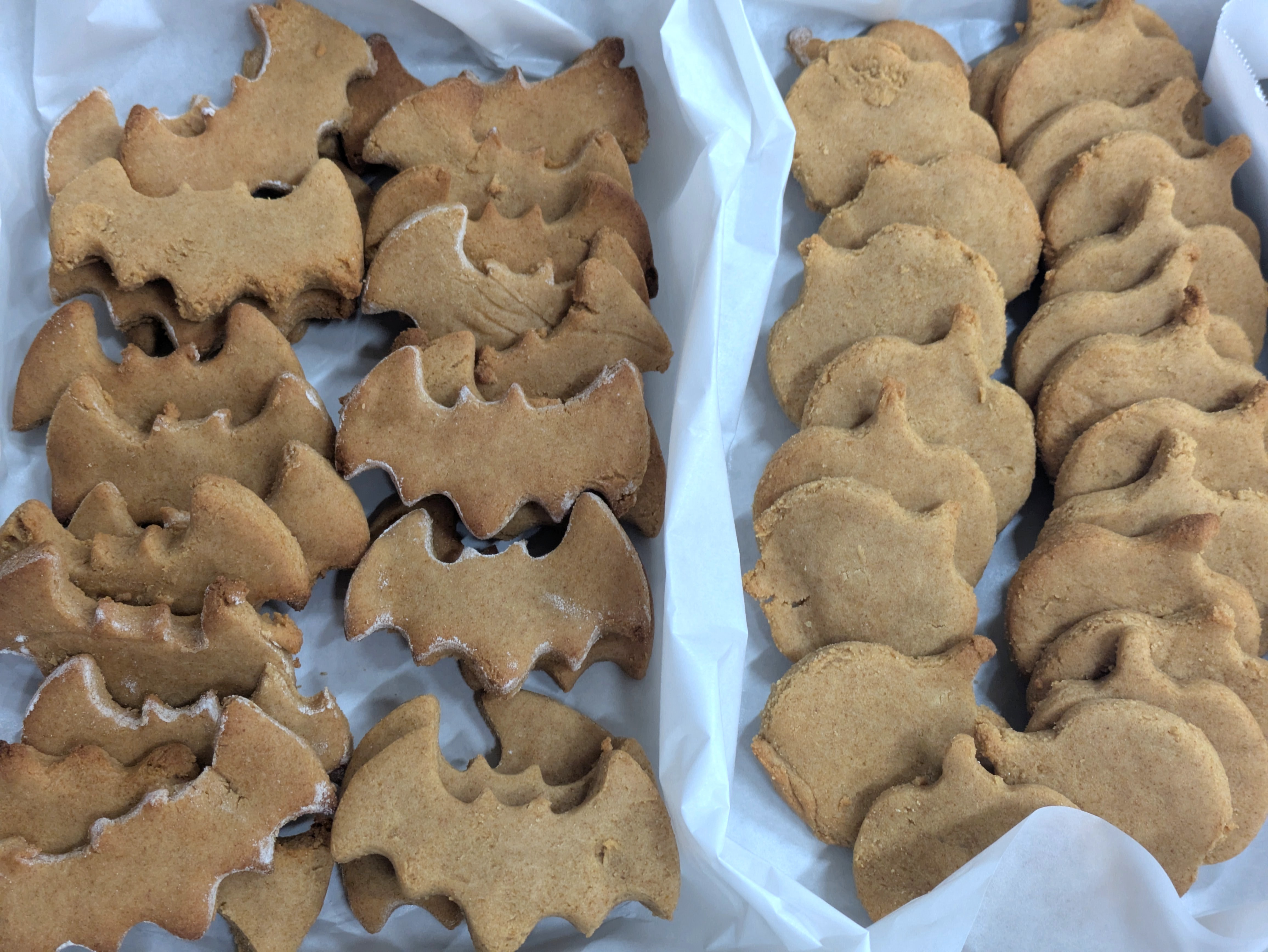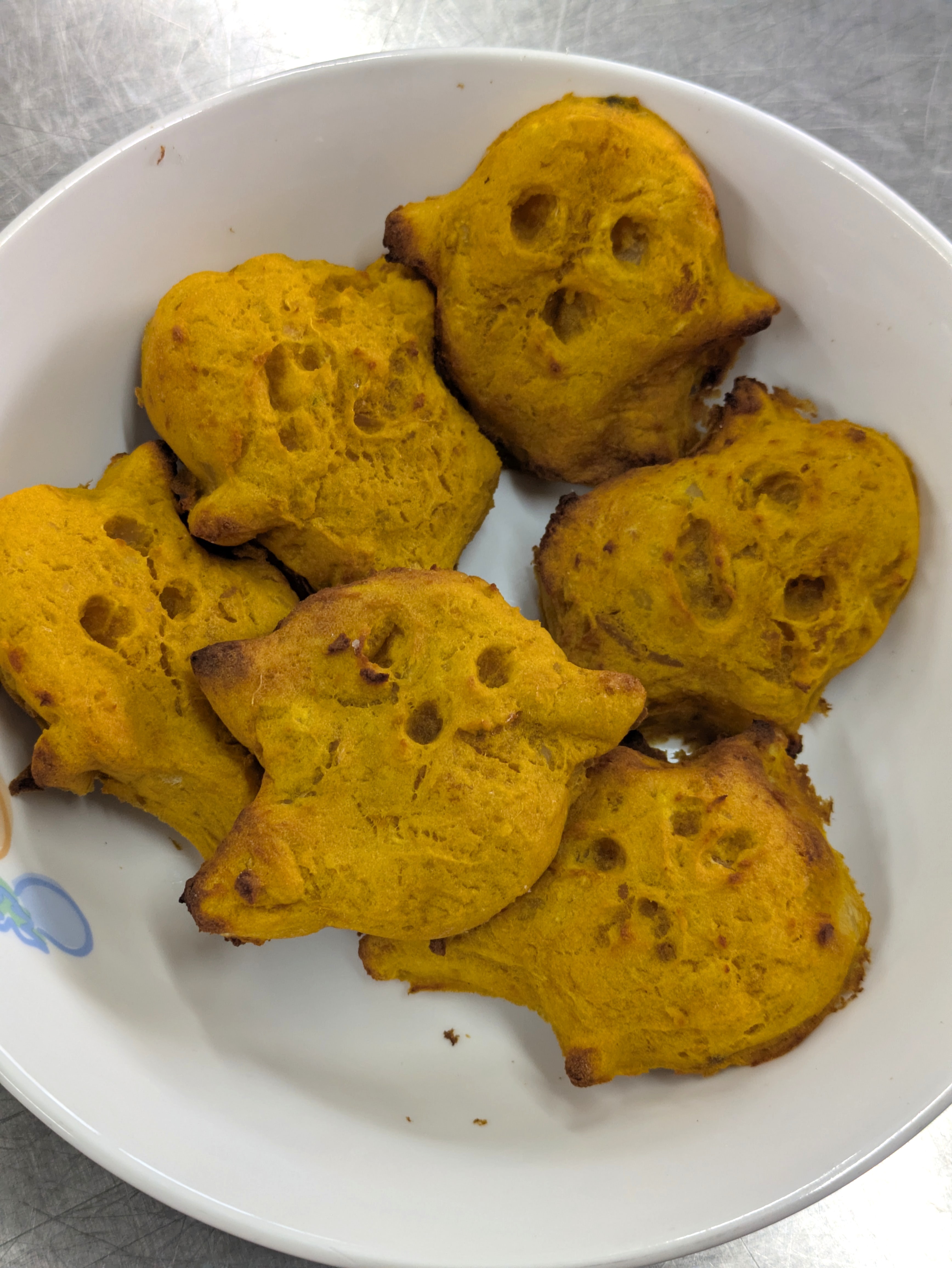 今日はハロウィン!かぼちゃ・黒猫・おばけ・コウモリの4種類のクッキーをおやつで食べました。
